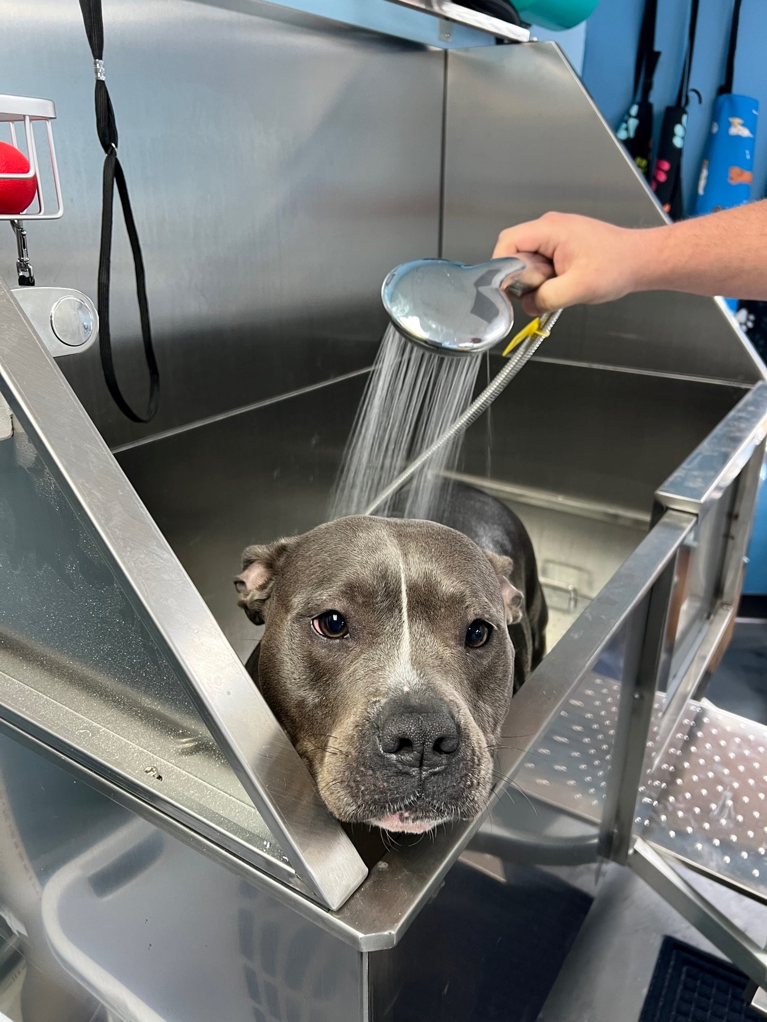 At Hound and Home, we offer a low-stress environment by only taking one dog at a time and do not crate your dog to dry or wait.